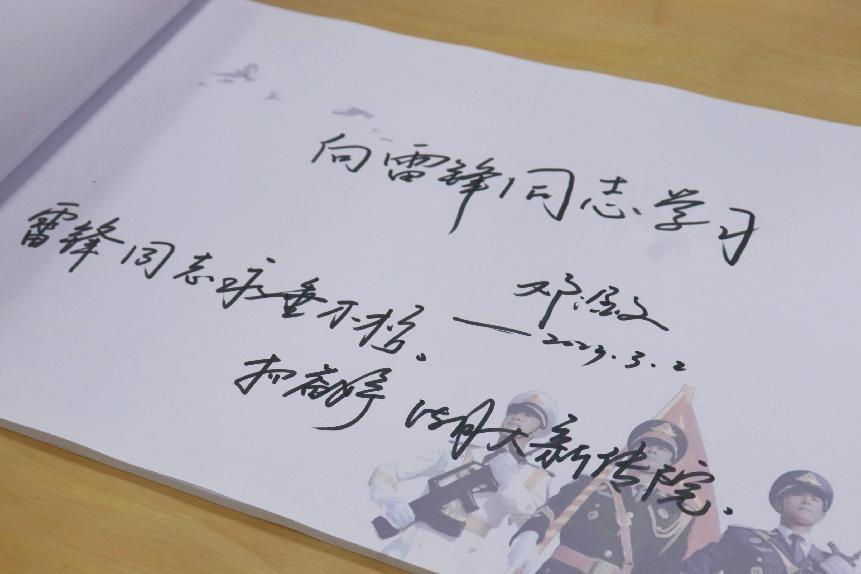 来到位于人武部文体中心的雷锋书屋,同学们从一本本雷锋故事绘中感悟“雷锋日记”里的军民情深,追寻雷锋的成长道路和生活足迹。讲解员表示,雷锋书屋进一步拓宽了宣传雷锋精神的渠道,鼓励同学们像雷锋一样发扬“挤”和“钻”的钉子精神,学而不厌,锲而不舍,发奋学习,永不懈怠。
